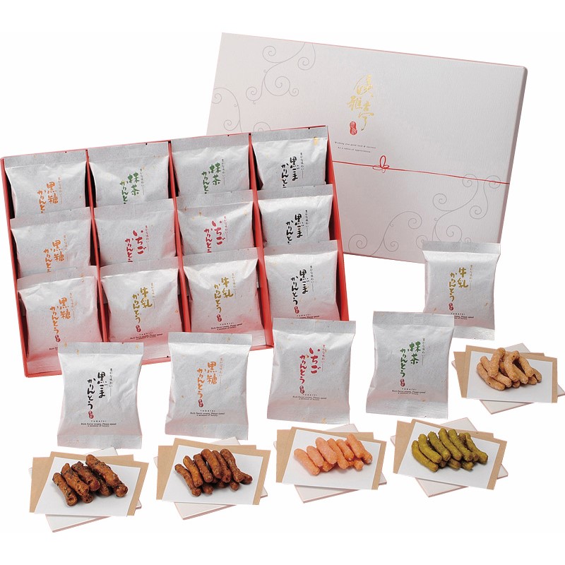 かりんとう(黒糖・黒ごま)(各10g)×各3、かりんとう(牛乳・抹茶・いちご)(各10g)×各2