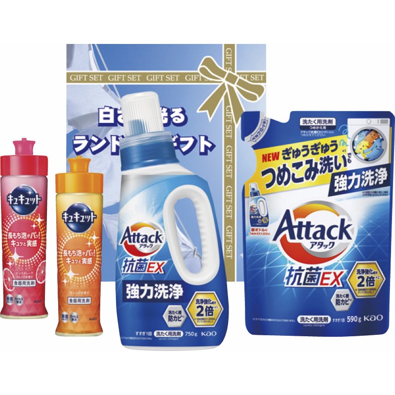アタック抗菌EX(750g)・アタック抗菌EX詰替用(590g)・キュキュット(オレンジ・ピンクグレープフルーツ)(各220ml)×各1