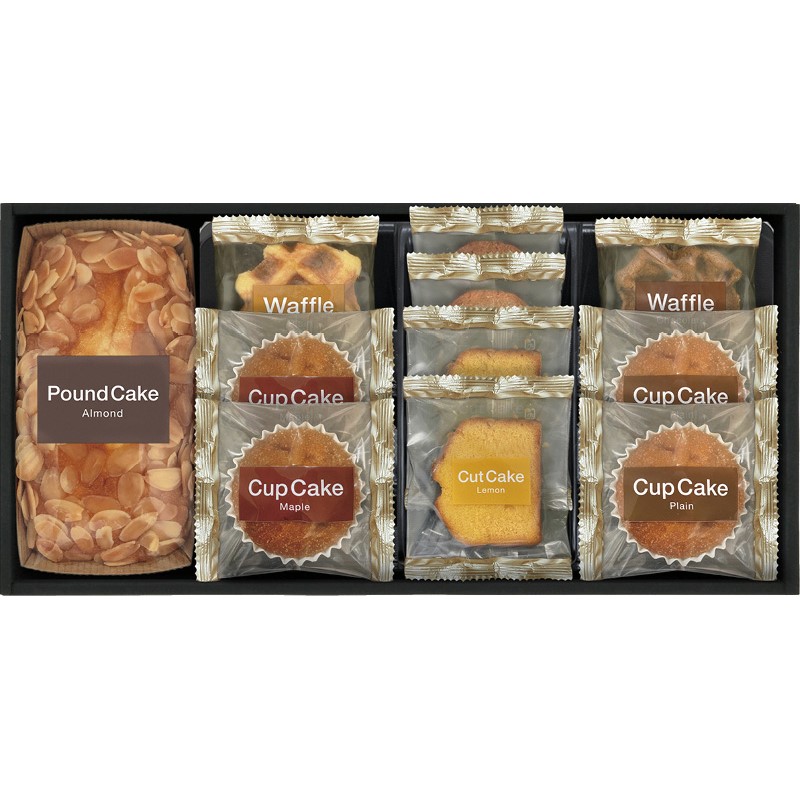 カップケーキ(プレーン・メープル)・レモンケーキ×各2、アーモンドパウンドケーキ・ワッフル(プレーン・チョコ)・ラスク(シュガー・ココナッツ)×各1