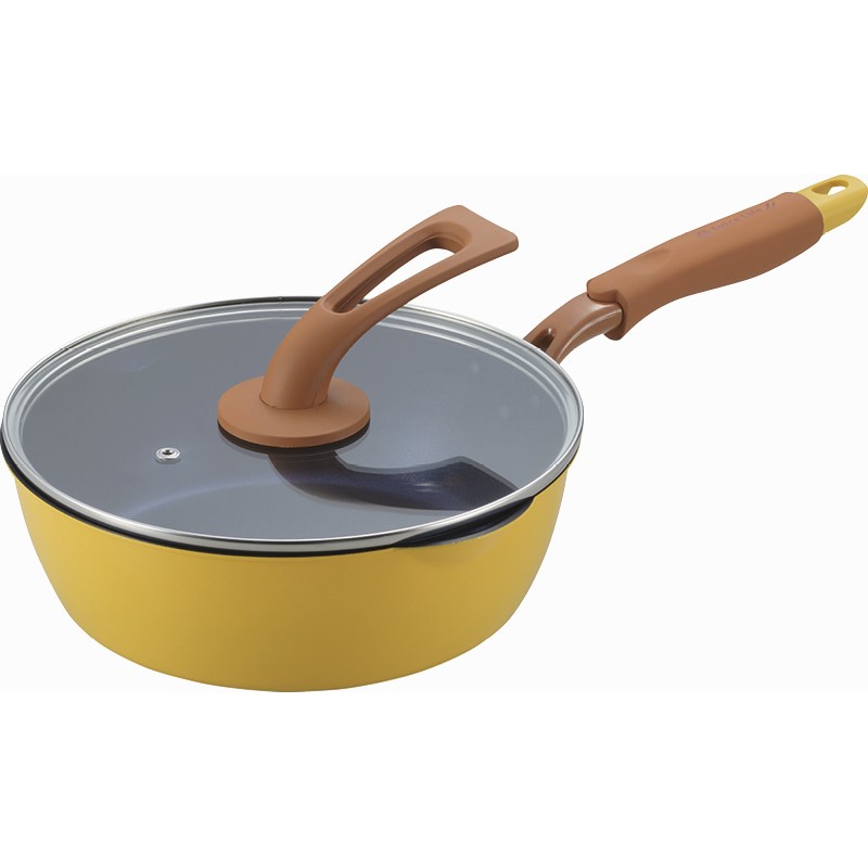本体:アルミニウム合金(内面フッ素樹脂塗膜加工・外面焼付塗装)、はり底:ステンレス鋼、蓋:強化ガラス、取っ手・つまみ:フェノール樹脂
