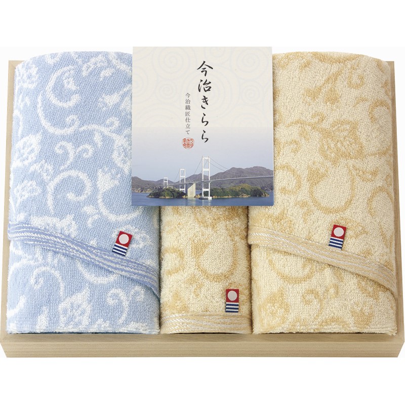 百二十年の歴史と受け継がれる職人技が光る情緒溢れる今治タオルを 高級感漂う木箱に丁寧に詰め合わせた、特別な贈り物