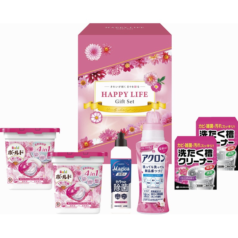 P&Gボールドジェルボール4D(11個)・洗濯槽クリーナーローズの香り(50g×2包入)×各2、ライオンアクロン フローラルブーケの香り(450ml)・ライオンチャーミーマジカ速乾+(プラス)カラッと除菌 ホワイトローズの香り(220ml)×各1