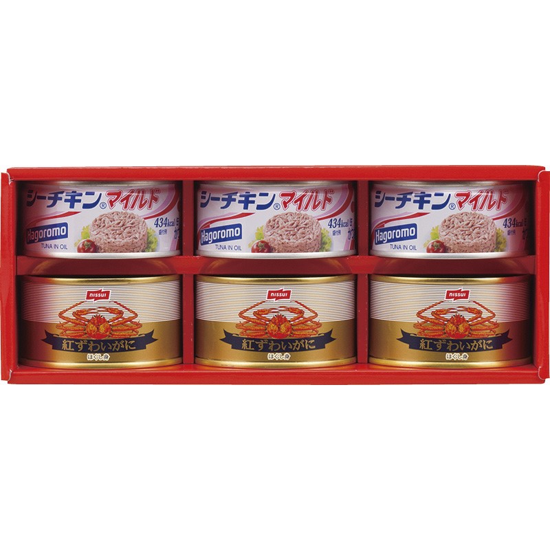 はごろもシーチキンマイルド(140g)・ニッスイ紅ずわいがにほぐし身(100g)×各3