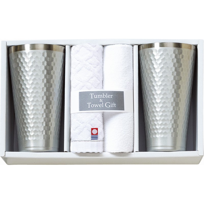 タンブラー(φ8×14.5cm・420ml)×2、今治ウォッシュタオル(28×30cm)・マイクロファイバークロス(25×25cm)×各1