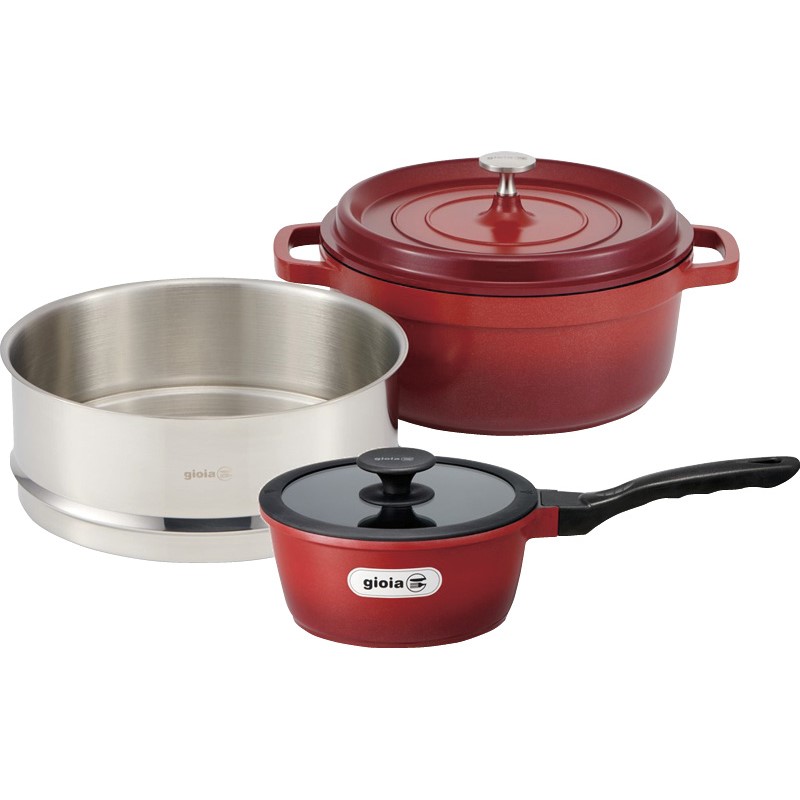 ”販促ノベルティ・記念品・イベントに!” 『ジョイア ソースパン&蒸し器セット レッド』