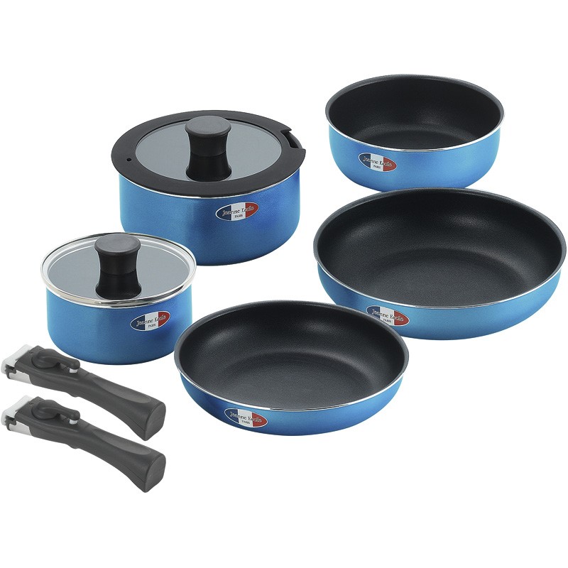ライトブルーのボディが爽やかなIH対応の鍋セットです。ハンドル着脱式でキッチンスペースにスッキリ収納。本体はオーブン調理もでき、アツアツの料理をそのまま食卓に!内面はフッ素樹脂加工で焦げ付きにくくお手入れ簡単。手軽に使えるフライパンと鍋のセットです。ガス火・IH電磁調理器100V・200V対応。