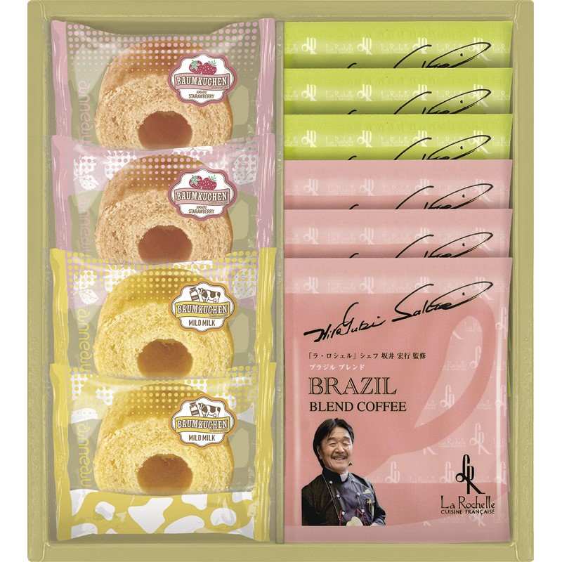 ドリップコーヒー(ブラジルブレンド・キリマンジャロブレンド)(各7g)×各3、バウムクーヘン(ミルク・あまおういちご)×各2