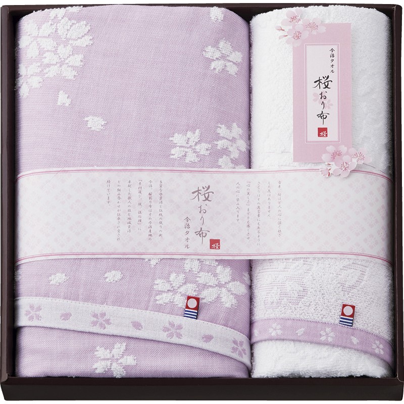 ”福利厚生 周年 卒業 記念品” 『今治製タオル 桜おり布 バスタオル&フェイスタオル パープル』
