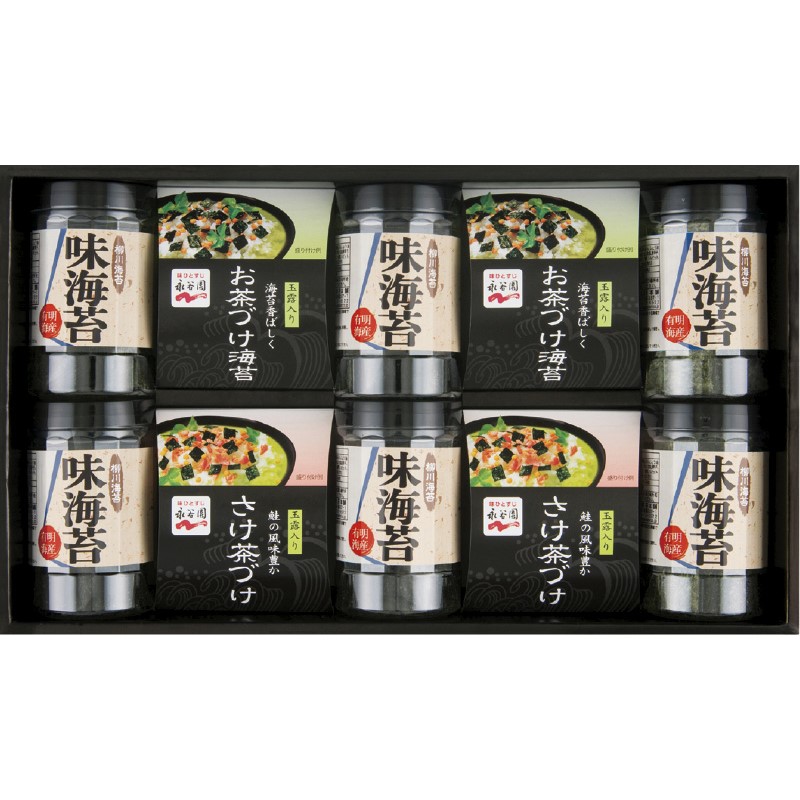 柳川海苔味付け海苔(8切32枚)×6、永谷園お茶づけ海苔(6.3g×3袋)・永谷園さけ茶づけ(5.6g×3袋)×各2