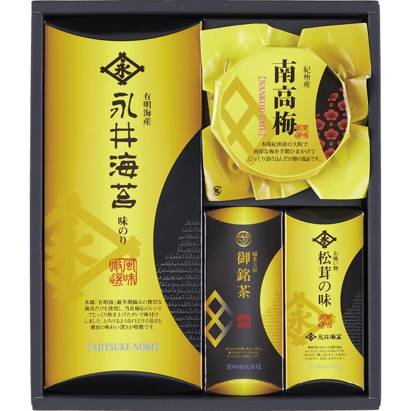 永井味付海苔(8切6枚×3袋)・永井お吸い物(2袋)・南高梅(100g)・深蒸し茶(40g)×各1