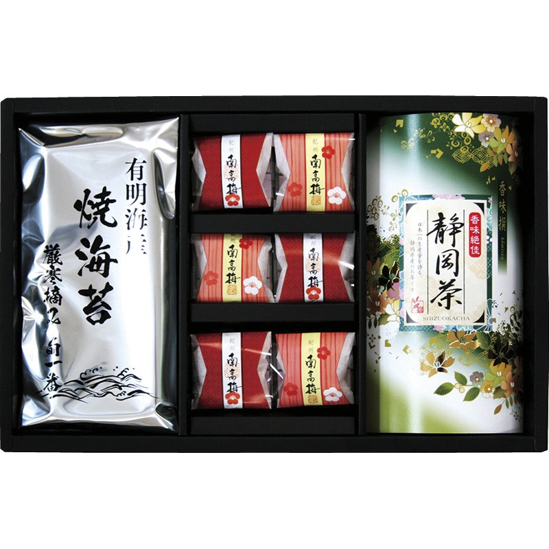 紀州南高梅×6、静岡茶(50g)・有明海産焼海苔(3切5枚×2袋)×各1