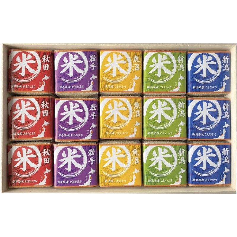 新潟県産コシヒカリ・新潟県産こしいぶき・秋田県産あきたこまち・岩手県産ひとめぼれ・魚沼産コシヒカリ(各300g)×各3