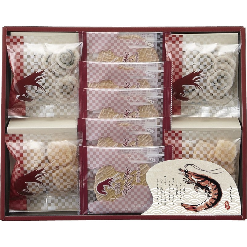 赤えびせんべい(1枚)×5、えびせん(うず巻・えび松風)(各10g)×各2