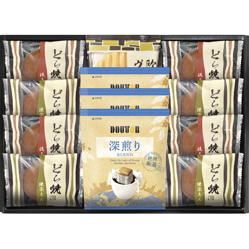 どら焼き(粒あん・八女抹茶あん)×各4、ドトールドリップコーヒー(7g)×3、欧風ヴァッフェル×1