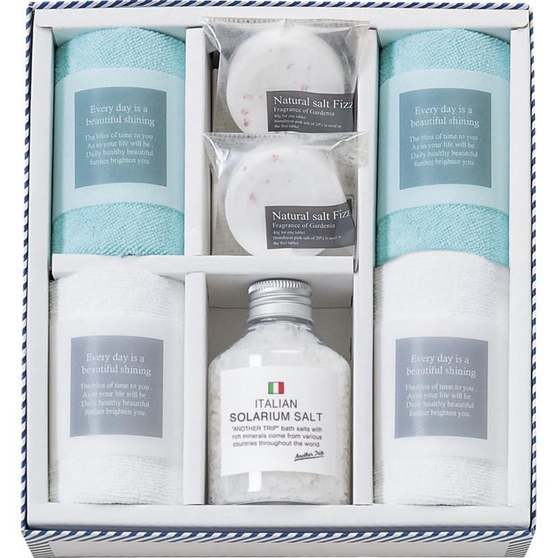 マイクロファイバークロス(中国)(25×25cm)×4、ソルトフィズ(40g)×2、イタリアンバスソルト(イタリア)(180g)×1