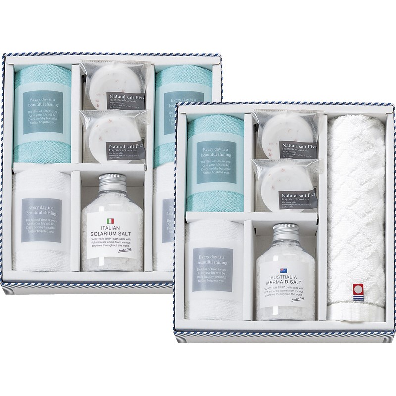 マイクロファイバークロス(中国)(25×25cm)×6、ソルトフィズ(40g)×4、イタリアンバスソルト(イタリア)(180g)・オーストラリアバスソルト(オーストラリア)(175g)・今治ウォッシュタオル(28×30cm)×各1