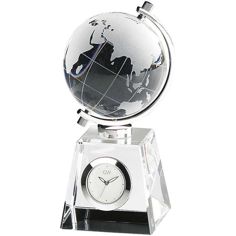 コンパクトで高級感あふれるデスククロック。創立や周年記等のギフトに最適。世界を相手に活躍するイメージ。精巧な細工で表現された地球は、回転します。