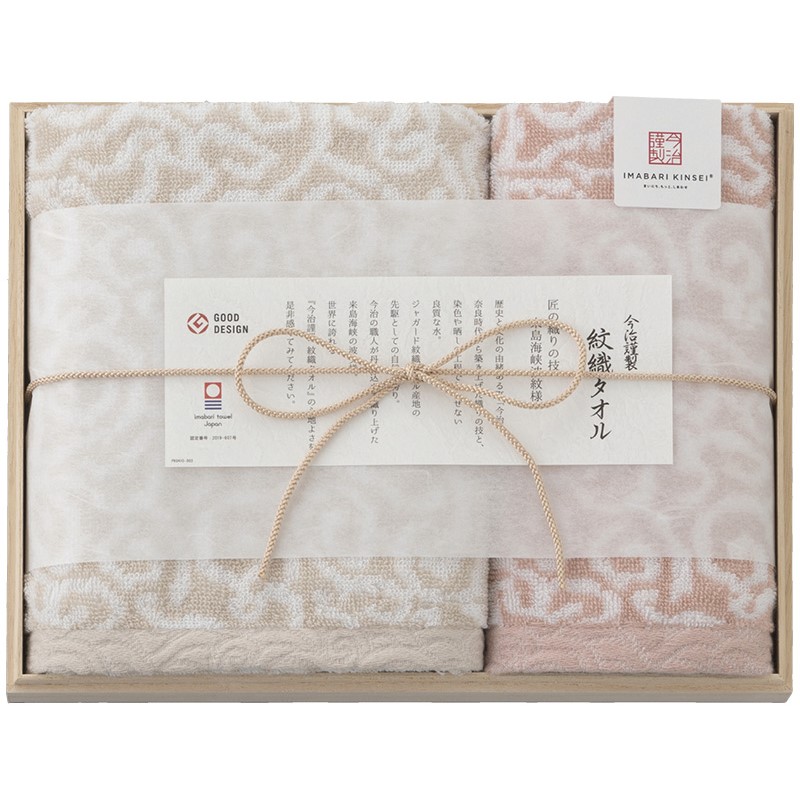今治謹製 紋織タオル フェイスタオル&ウォッシュタオル(木箱入) ピンク