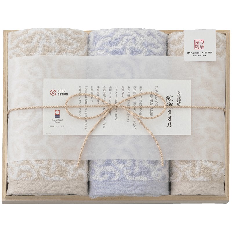 2004年に販売をスタートした「今治謹製 紋織タオル」。15年間、皆さまからのご愛好を受け、累計販売数700万個を突破致しました。この度、「いちばんのタオルギフト」を目指して、紋織タオルはリニューアルを致します。より上質に、より柔らかく。もっと、特別なギフトへ。リニューアルポイント(1)新色ブルー配色追加 (2)タオルのボリューム感Up(3)ヘムにジャガード柄を織り込んで高級感Up(4)今治ブランド認定