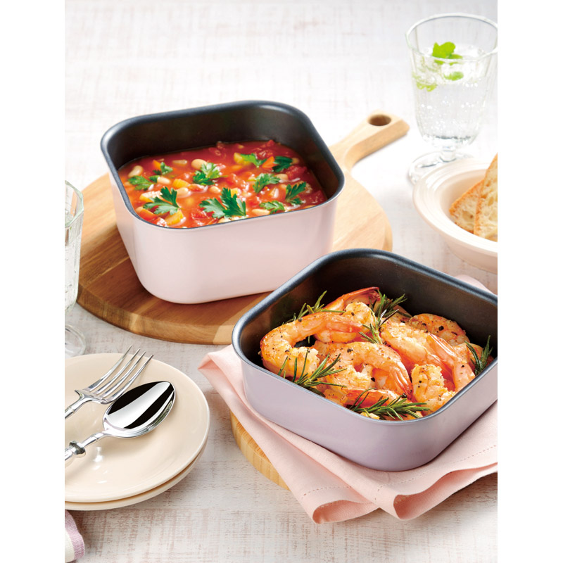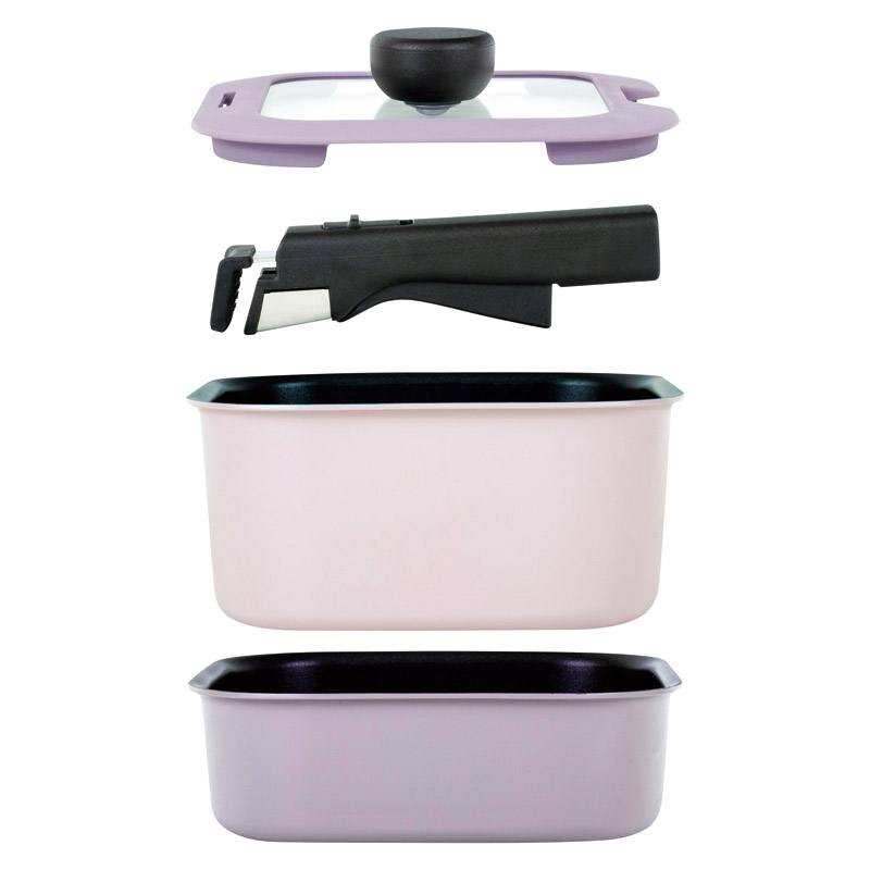 アルミニウム合金(内面:フッ素樹脂加工(シルクウエアEL)・外面:焼付塗装・底面:ステンレス)・強化ガラス・シリコーン・PF