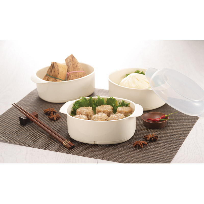 レンジで簡単。ふっくら本格点心が楽しめます。蒸気の力で、ふっくらふわふわの蒸し料理に仕上げます。食洗機OK。