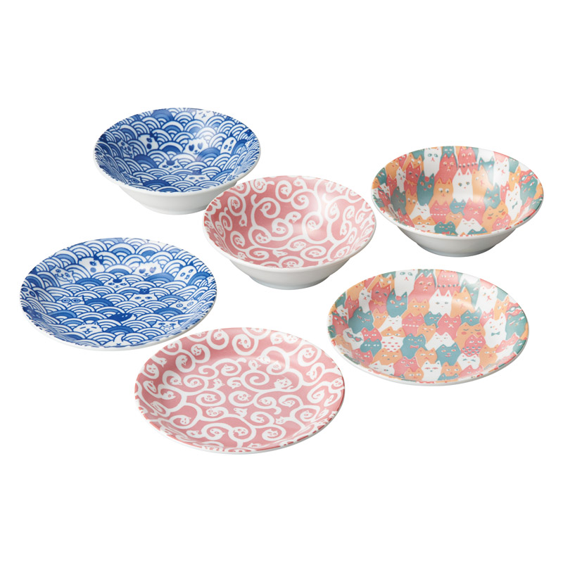 愛sayama ねこだらけ デザート皿&ボウル6Pセット
