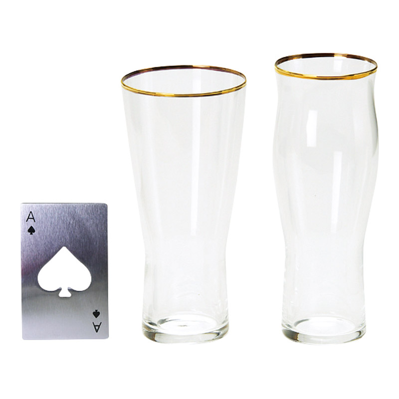 喉ごしビアグラス(約410ml)(約φ77×163mm)・くちあたりビアグラス(約390ml)(約φ64×173mm)・ボトルオープナー×各1