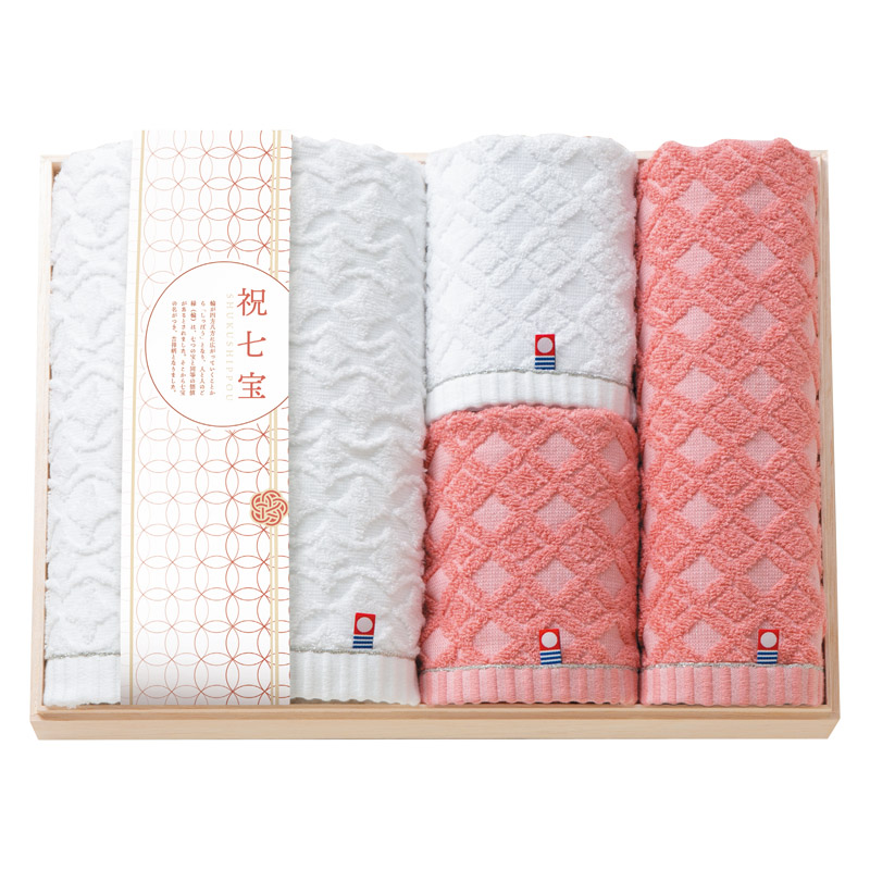 バスタオル(約400×1100mm)・ウォッシュタオル(約280×300mm)×各1、フェイスタオル(約280×750mm)×2