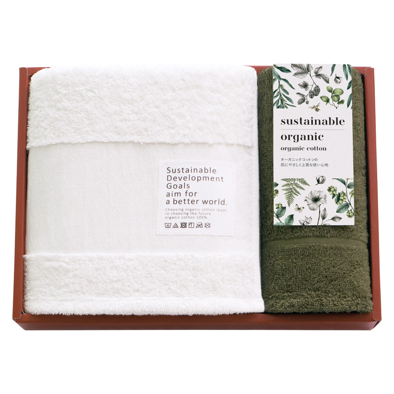 ”記念品 ギフト” 『国際認証取得オーガニック バス1P・フェイスタオル1P グリーン』