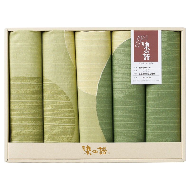 ”販促ノベルティ・記念品・イベントに!” 『染の譜 座布団カバー5枚組 丸重ね グリーン』
