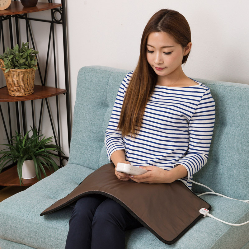 冷えている部分を温めて癒す。体を温めて新陳代謝を良くしよう。電源の消し忘れなどを防止できます。冷えている背中・腰・お腹・膝・脚などにご使用頂けます。付属カバーの固定ベルトで固定して、掛けて使用できます。●温度調節は3段階(高50度・中45度・低40度)●30分・60分の時間設定