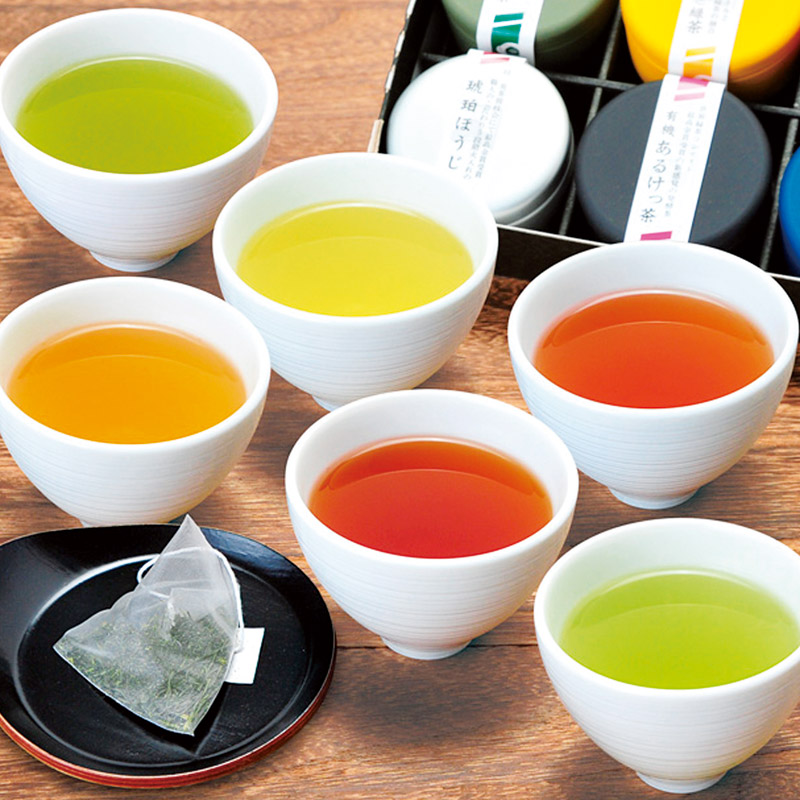ティーバッグ(掛川深蒸し茶・和紅茶伊久美・檸檬緑茶・有機あるけっ茶・さえみどり)(3g×3個)・ティーバッグ(琥珀ほうじ)(2g×3個)×各1
