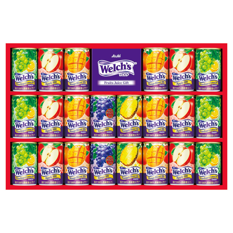 ウェルチ(コンコードグレープ100・パインアップルブレンド100)(160g)×各2、ウェルチ(アップル100・マンゴーブレンド100・ホワイトグレープ&レモン100)(160g)×各6