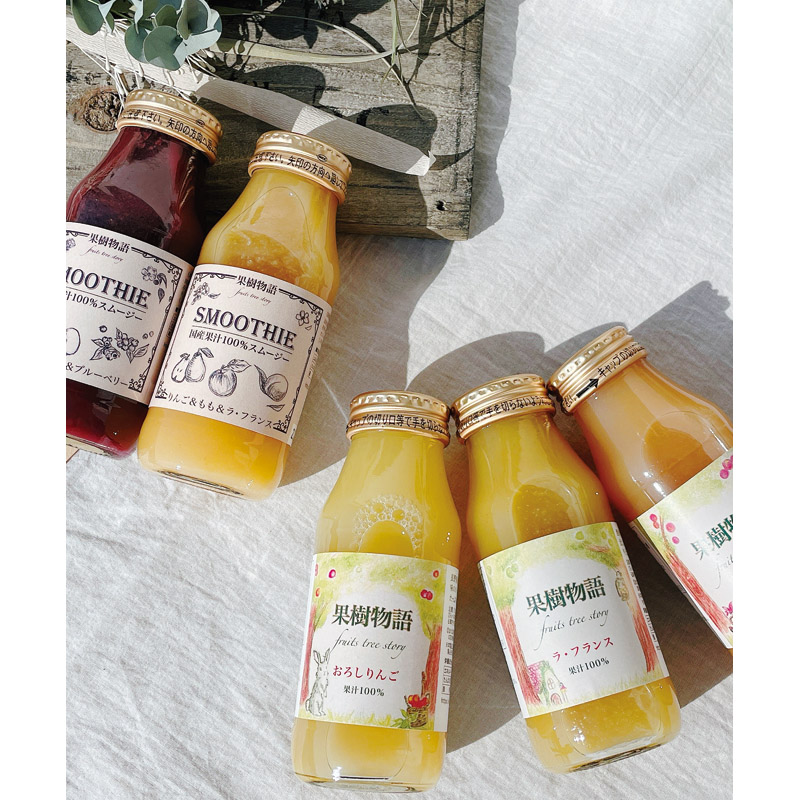 果樹物語(おろしりんご・ラ フランス・もも)(180ml)・スムージー(にんじん&ラ フランス&りんご・りんご&もも&ラ フランス・ぶどう&りんご&ブルーベリー)(180ml)×各1