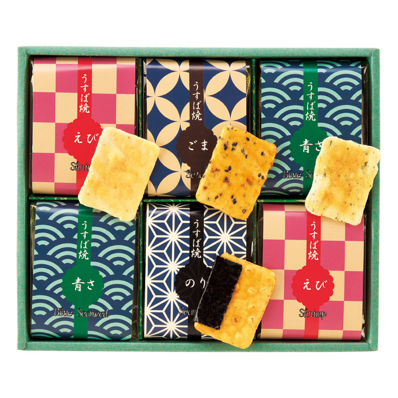 海老・あおさ海苔(各10枚入)×各2、胡麻・のり巻(各9枚入)×各1