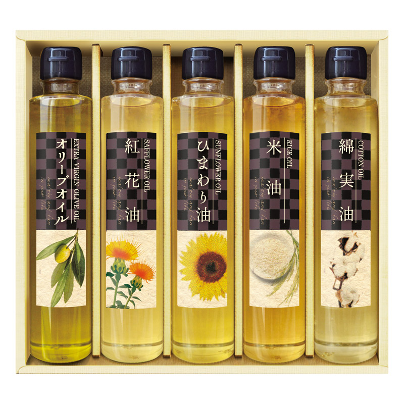 エクストラバージンオリーブオイル(165g)・ひまわり油(165g)・紅花油(165g)・綿実油(165g)・米油(165g)×各1