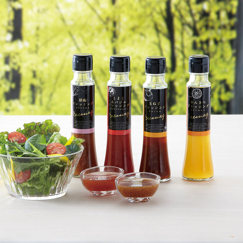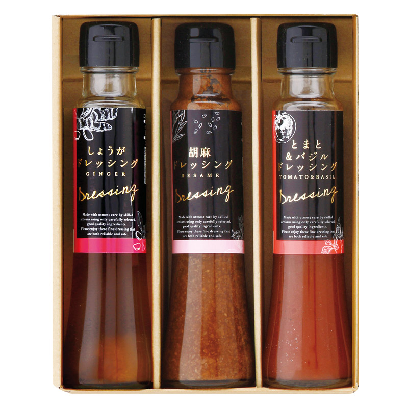 しょうがドレッシング(100ml)・胡麻ドレッシング(100ml)・とまと&バジルドレッシング(100ml)×各1