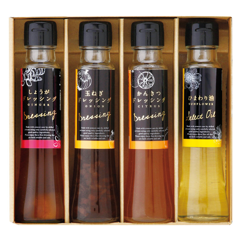 しょうがドレッシング(100ml)・玉ねぎドレッシング(100ml)・かんきつドレッシング(100ml)・ひまわり油(90g)×各1