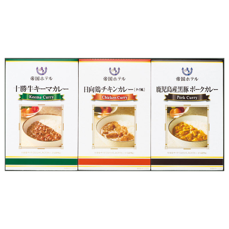 十勝牛キーマカレー(90g)・日向鶏チキンカレー(タイ風)(90g)・鹿児島産黒豚ポークカレー(90g)×各1