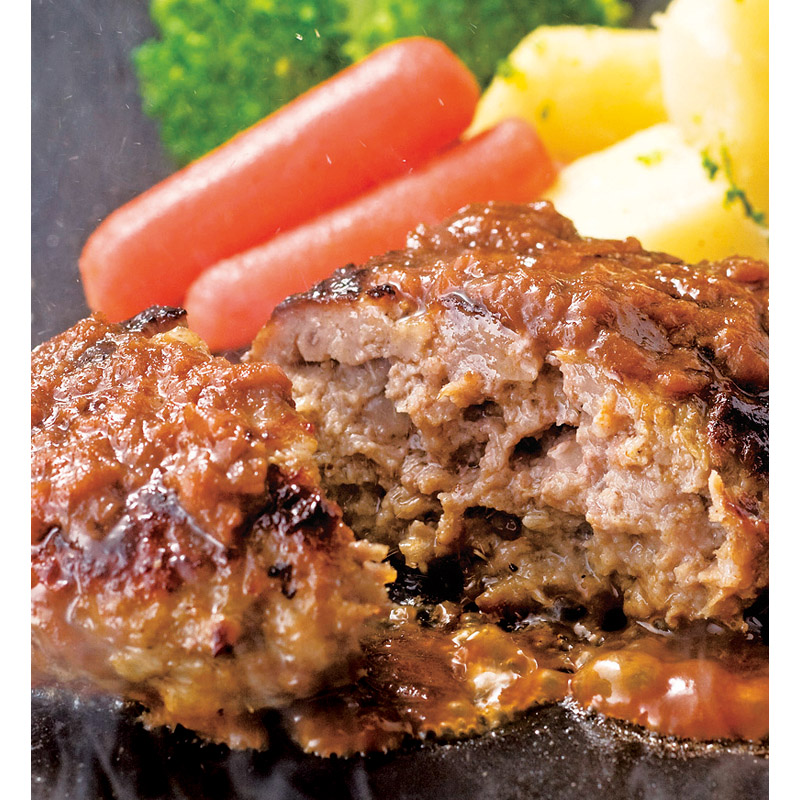 赤城牛ともちぶたが入った本格派レストランハンバーグ パテは肉屋が作ったからこその粗挽き&無添加。味の深さに配慮をほどこしたデミソース付き。冷凍保存で、温めていただくだけでお召し上がりいただけます。