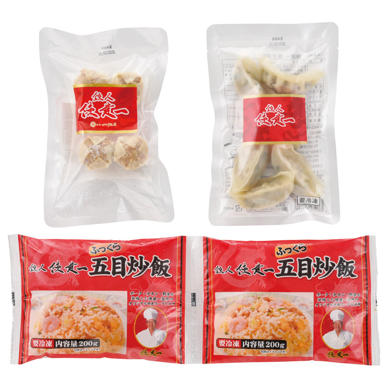 餃子(6個入)(120g)・貝柱入焼売(4個入)(120g)×各1、ふっくら五目炒飯(200g)×2