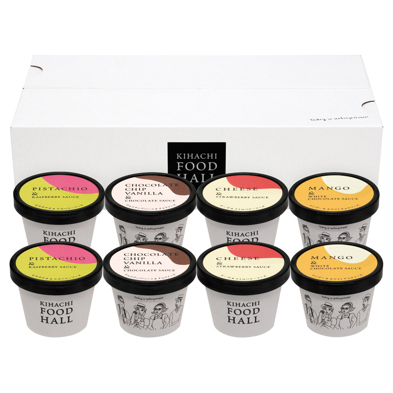 チョコチップバニラ&チョコソース(81ml)・チーズ&ストロベリーソース(81ml)・マンゴー&ホワイトチョコソース(81ml)・ピスタチオ&ラズベリーソース(81ml)×各2