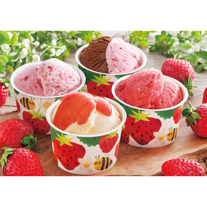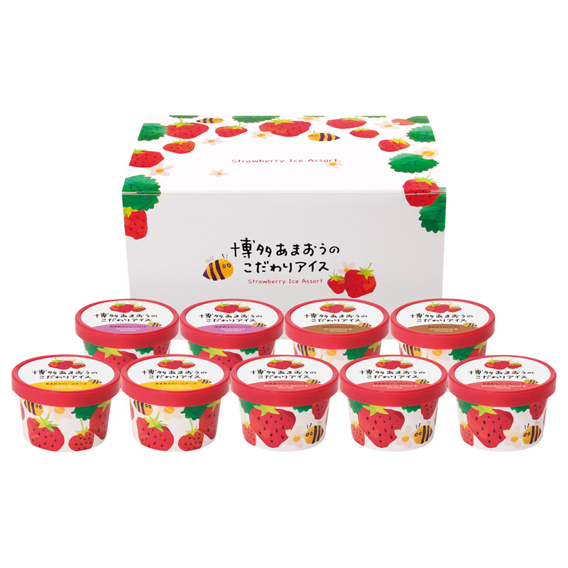 あまおうソース&バニラ(58ml)×3、あまおう&ショコラ(76ml)・あまおうクリームチーズ(78ml)・あまおうシャーベット(78ml)×各2