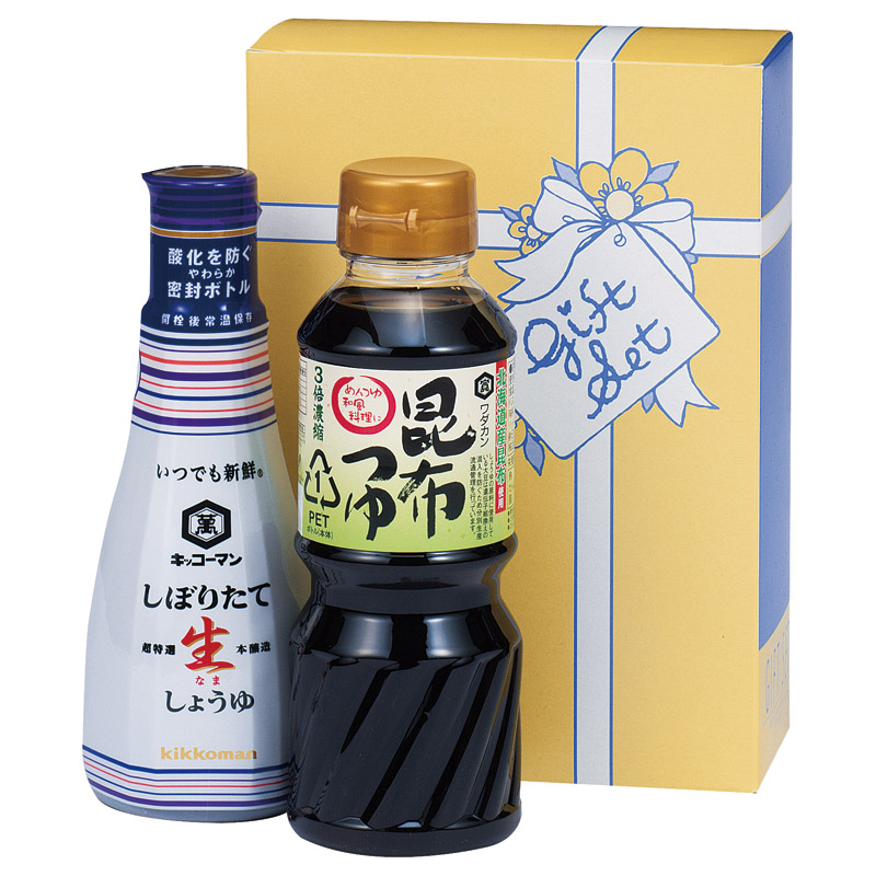 キッコーマンしぼりたて生しょうゆ(200ml)・ワダカン昆布つゆ(300ml)×各1