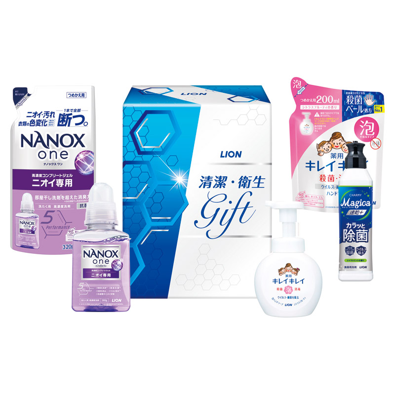 NANOX oneニオイ専用(380g)・NANOX oneニオイ専用詰め替え(320g)・キレイキレイ薬用泡ハンドソープ(250ml)・キレイキレイ薬用泡ハンドソープ詰め替え(200ml)・チャーミーマジカ速乾プラスカラッと除菌(220ml)×各1