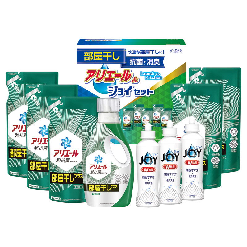P&Gアリエールジェル部屋干しプラス(690g)×1、P&Gアリエールジェル部屋干しプラス詰め替え(380g)×5、P&G除菌ジョイ(170ml)×3