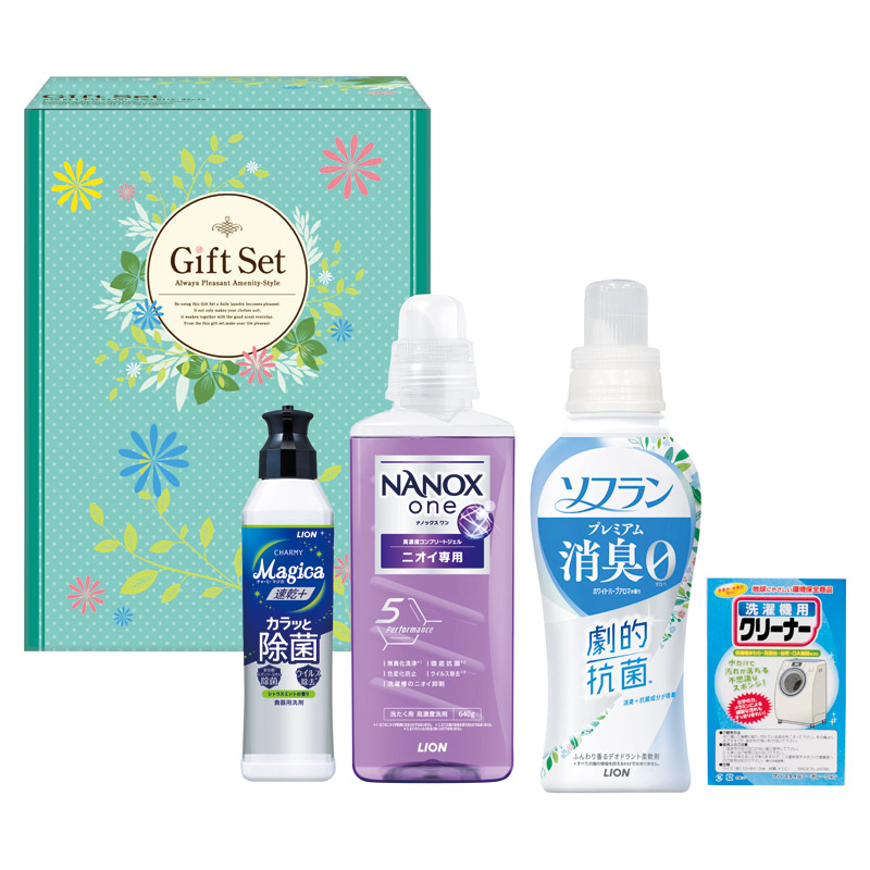 ライオンナノックスワン(640g)・ライオンソフランプレミアム消臭(510ml)・ライオンチャーミーマジカ(220ml)・洗濯機用クリーナーM×各1