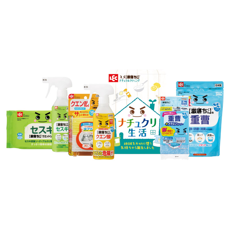 激落ちくんクエン酸スプレー(400ml)・激落ちくんクエン酸キッチンクリーナー(16枚)・激落ちくん重曹(500g)・激落ちくん重曹メラミンクリーナー(2枚入)・激落ちくんセスキスプレー(400ml)・GNセスキウェットシート(20枚)×各1