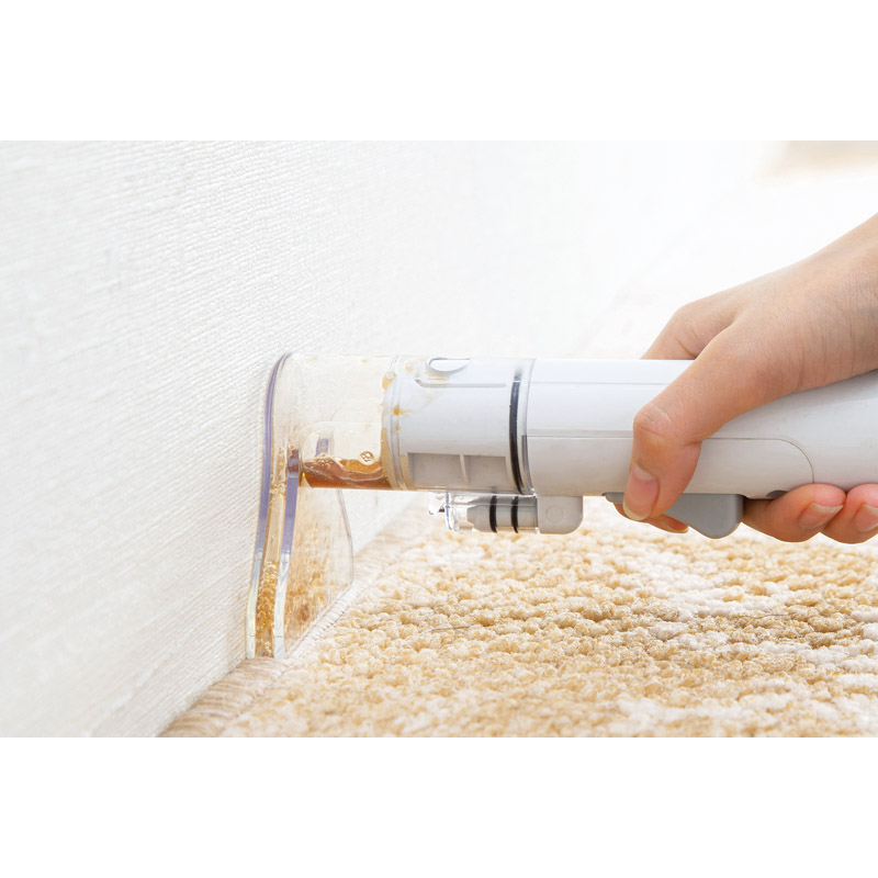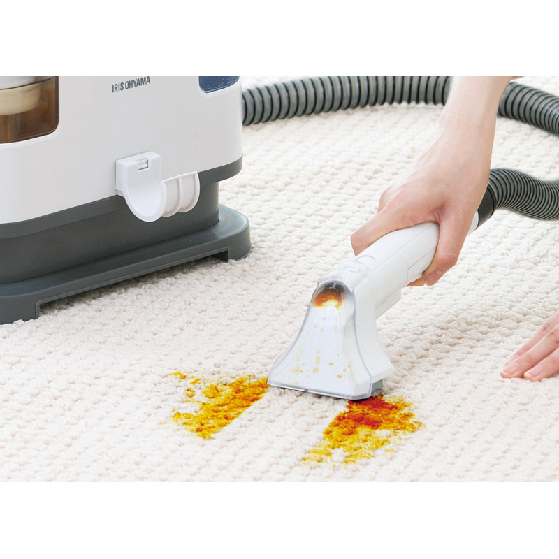水を吹きかけ汚れを浮かせ、浮かせた汚れを水と共に吸い取ることができるリンサークリーナーです。電動ポンプ付きで、レバーを引くだけでラクに水を吹きかけることが出来ます。ソファや車のシートなど、布製品の洗浄に最適です。ブラシ付きヘッドで、汚れをかき出し吸引できます。T型ヘッドで、汚れの溜まりやすい隅や溝の汚れも吸引できます。●清水タンク容量:1.1リットル●回収タンク有効容量:0.4リットル●ホースの長さ:1.2m