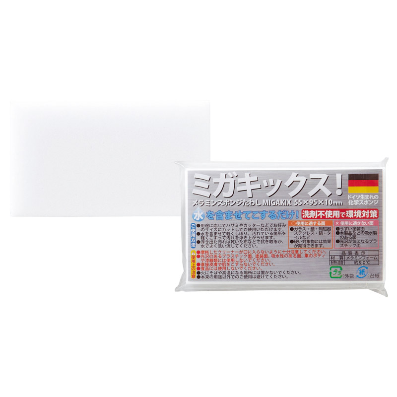水を含ませてこするだけで汚れがおもしろいほどよく落ちます。裏面に名刺が入るポケット付き。